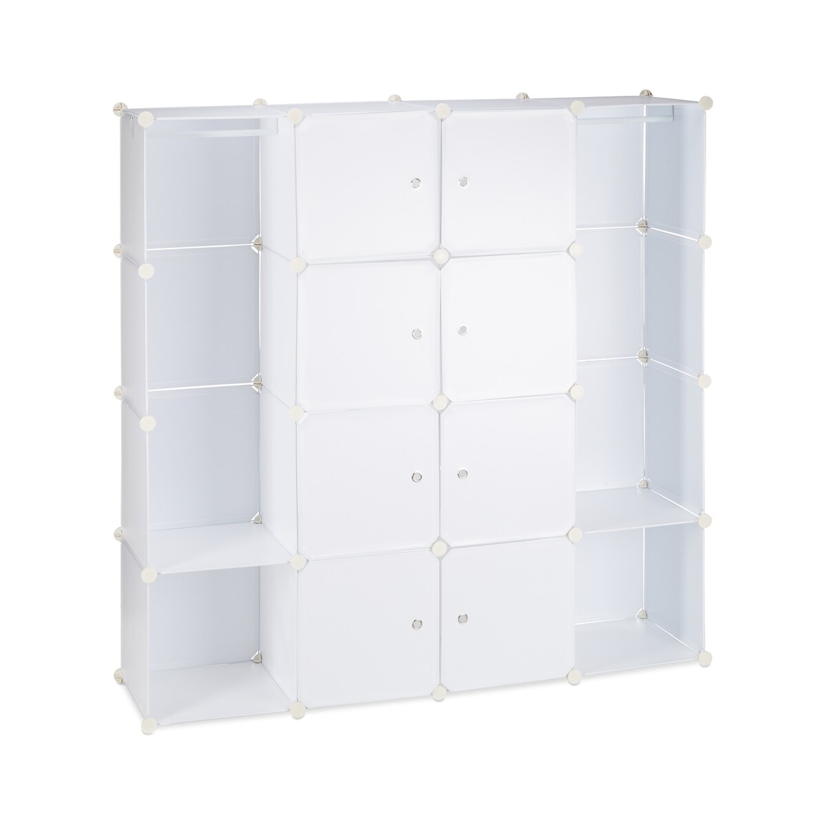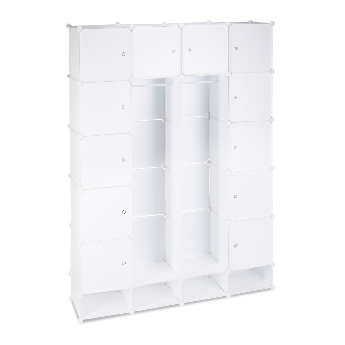 Relaxdays Kleiderschrank Stecksystem multifunktional, 18 Fächer, großer Kunststoff Garderobenschrank 145 x 200 cm, weiß