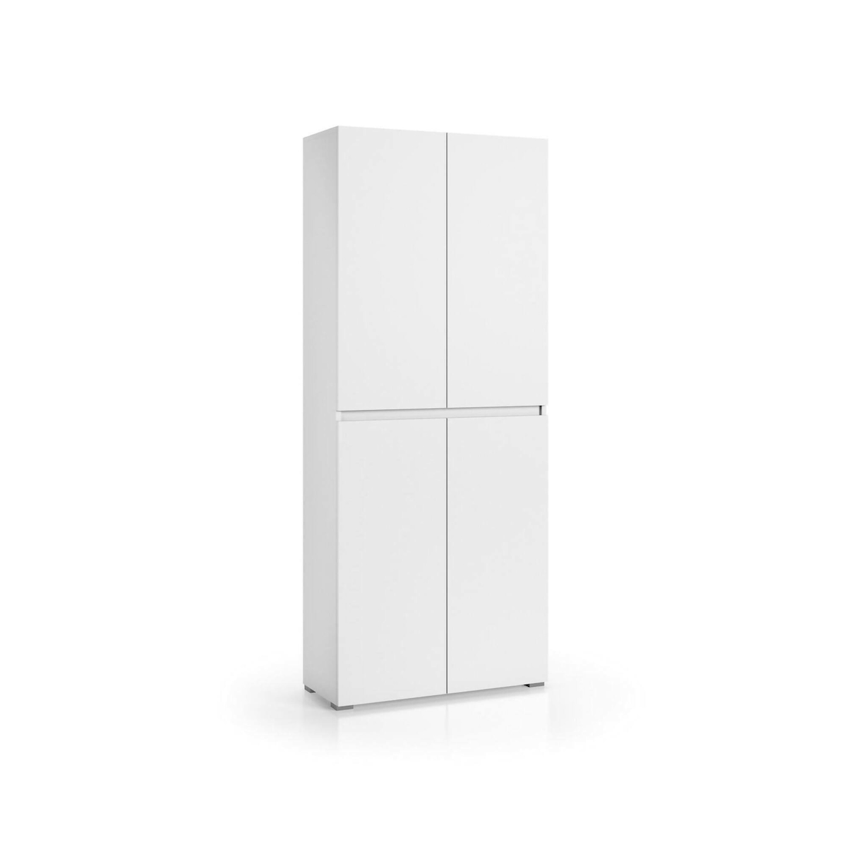 Großer Mehrzweck-Kleiderschrank Dbalestr, Schuhregal mit verstellbaren Regalen, Schuhschrank mit 4 Türen, 100 % Italy, 80 x 37 x 195 cm, Weiß