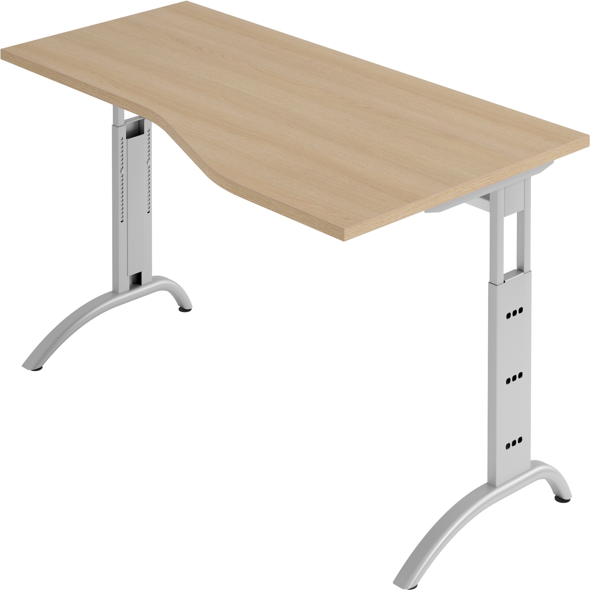 bümö höhenverstellbarer Eckschreibtisch H-Serie 200x120 cm in Eiche, Gestell in Silber - Schreibtisch L Form, großer Tisch für's Büro, Computertisch