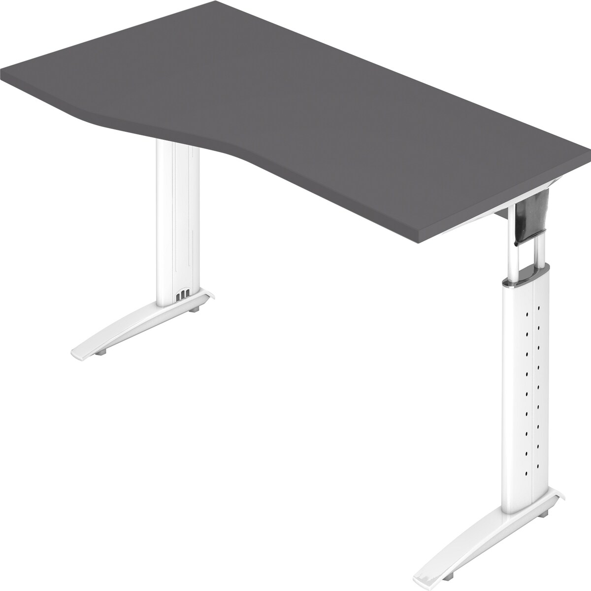 bümö höhenverstellbarer Schreibtisch U-Serie 180x100 graphit, Gestell in weiß - großer PC Tisch für's Büro manuell höhenverstellbar, Computertisch