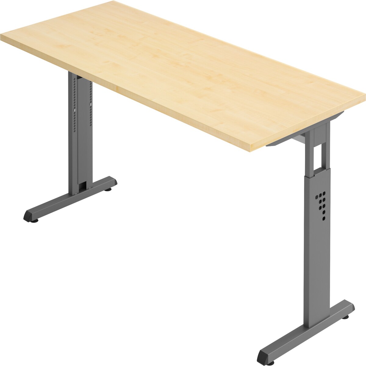 bümö höhenverstellbarer Schreibtisch O-Serie 180x80 cm in Ahorn, Gestell in Graphit - großer PC Tisch für's Büro manuell höhenverstellbar,