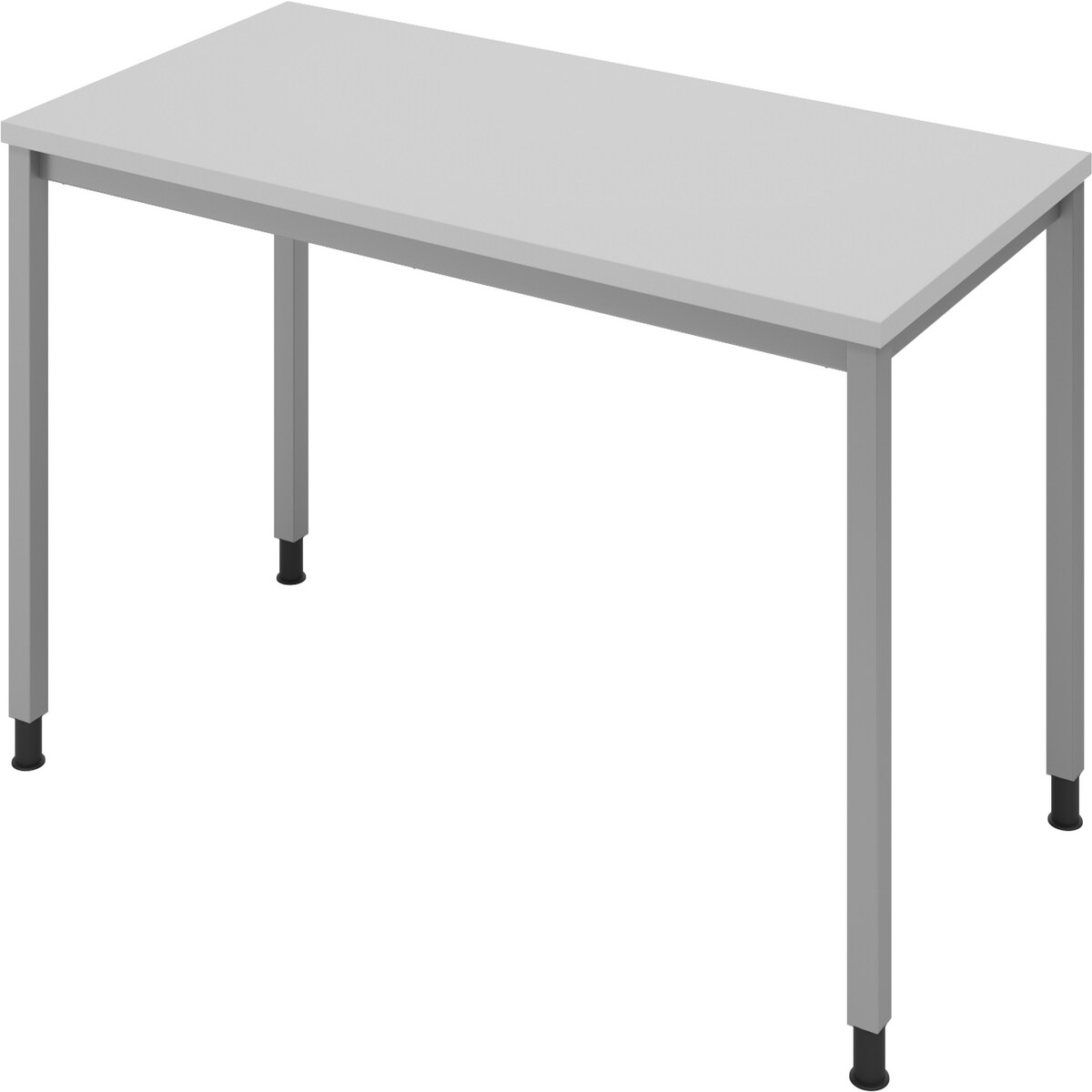 bümö Schreibtisch groß, N-Serie 180x100 cm, Tischplatte aus Holz in grau, Gestell aus Metall in Silber - PC Tisch, großer Computertisch für's Büro,