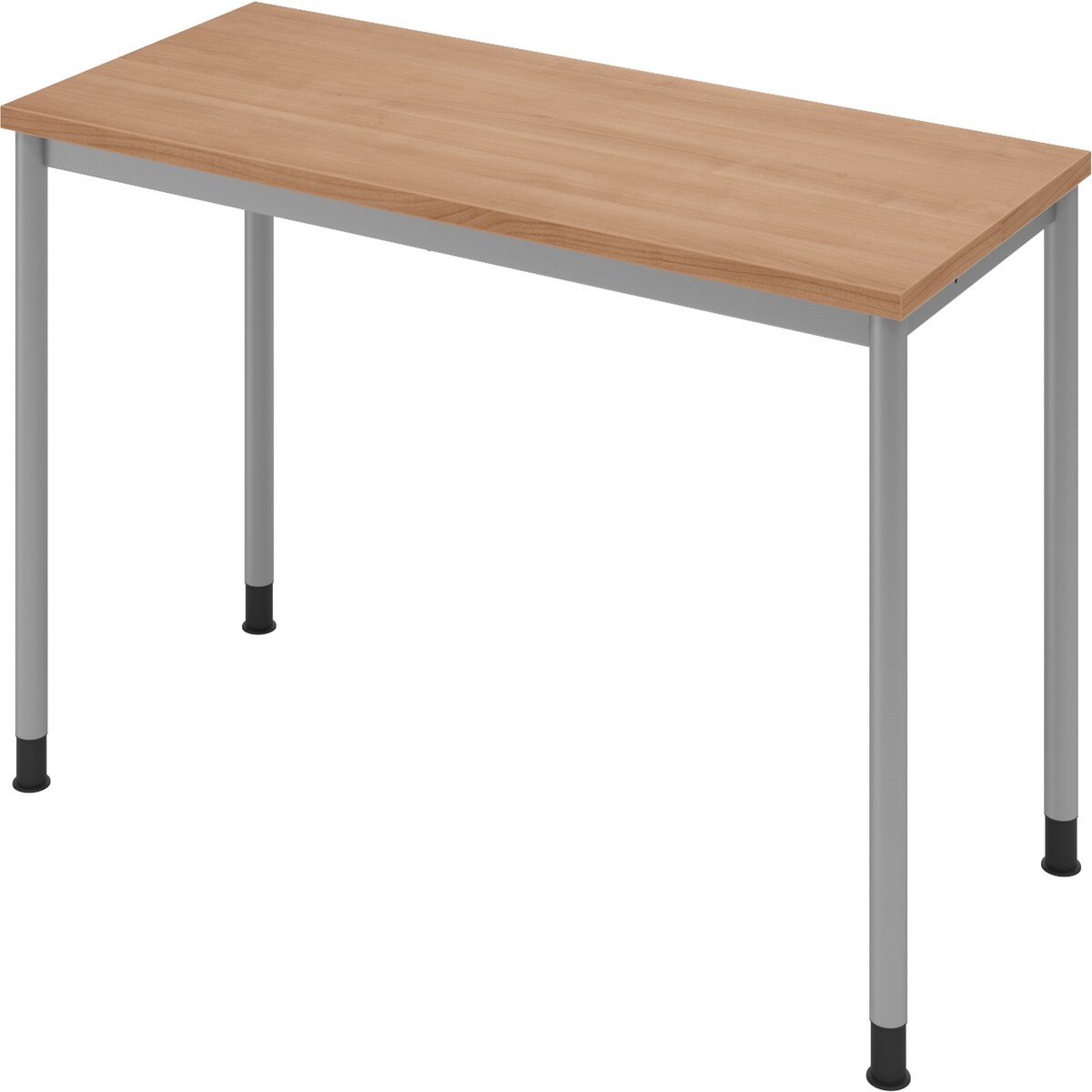 bümö Schreibtisch groß, N-Serie 200x100 cm, Tischplatte aus Holz in Nussbaum, Gestell aus Metall in Silber - PC Tisch, großer Computertisch für's