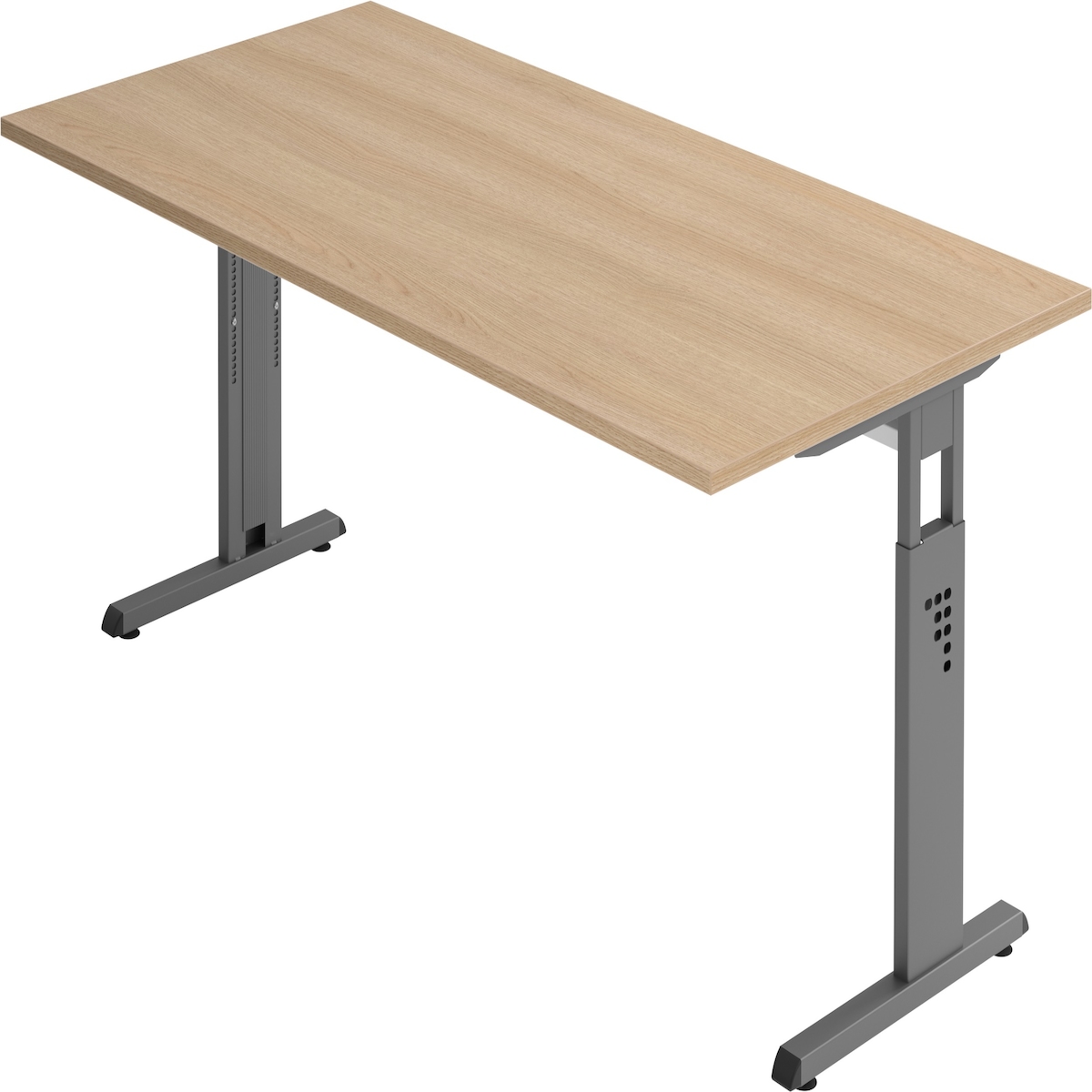 bümö höhenverstellbarer Schreibtisch O-Serie 180x100 cm in Eiche, Gestell in Graphit - großer PC Tisch für's Büro manuell höhenverstellbar,