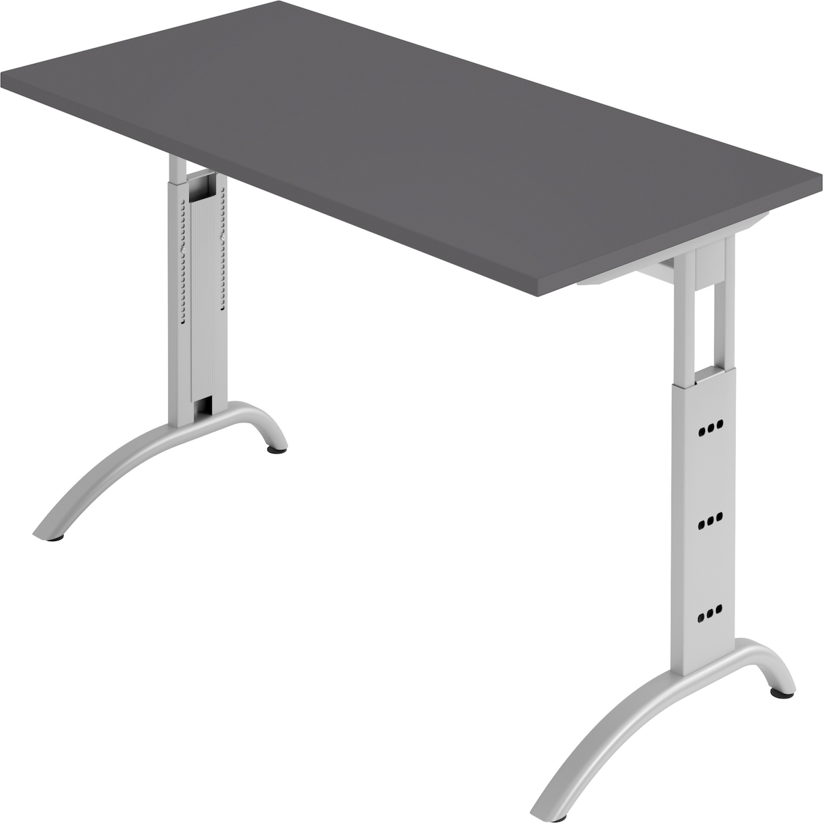 bümö höhenverstellbarer Schreibtisch Z-Serie 180x80 cm in grau, Gestell in Graphit - großer PC Tisch für's Büro manuell höhenverstellbar,