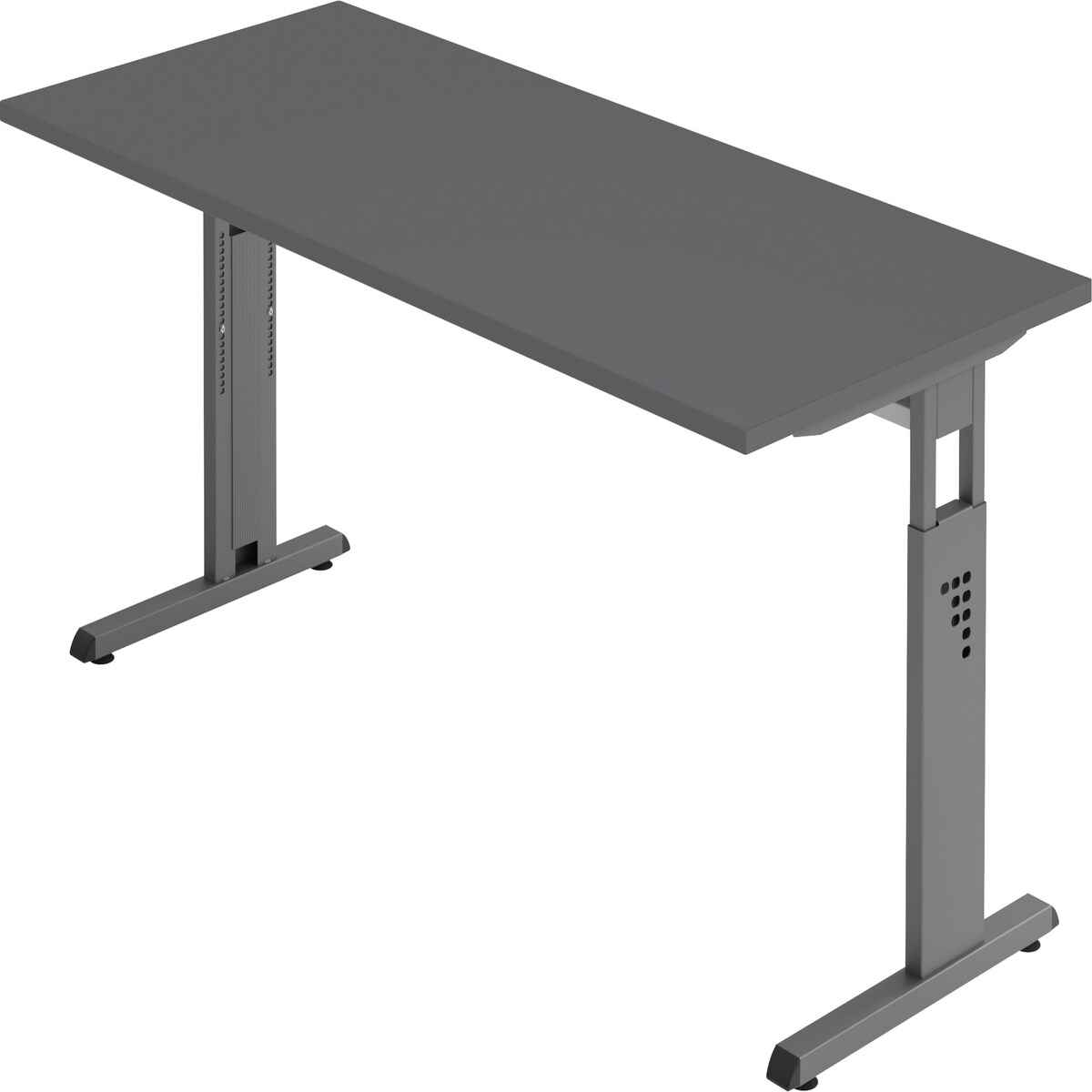 bümö höhenverstellbarer Schreibtisch O-Serie 180x80 cm in Graphit, Gestell in Graphit - großer PC Tisch für's Büro manuell höhenverstellbar,