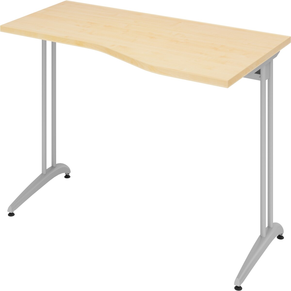 bümö Schreibtisch groß, B-Serie 180x100 cm, Tischplatte aus Holz in Ahorn, Gestell aus Metall in Silber - PC Tisch, großer Computertisch für's Büro,