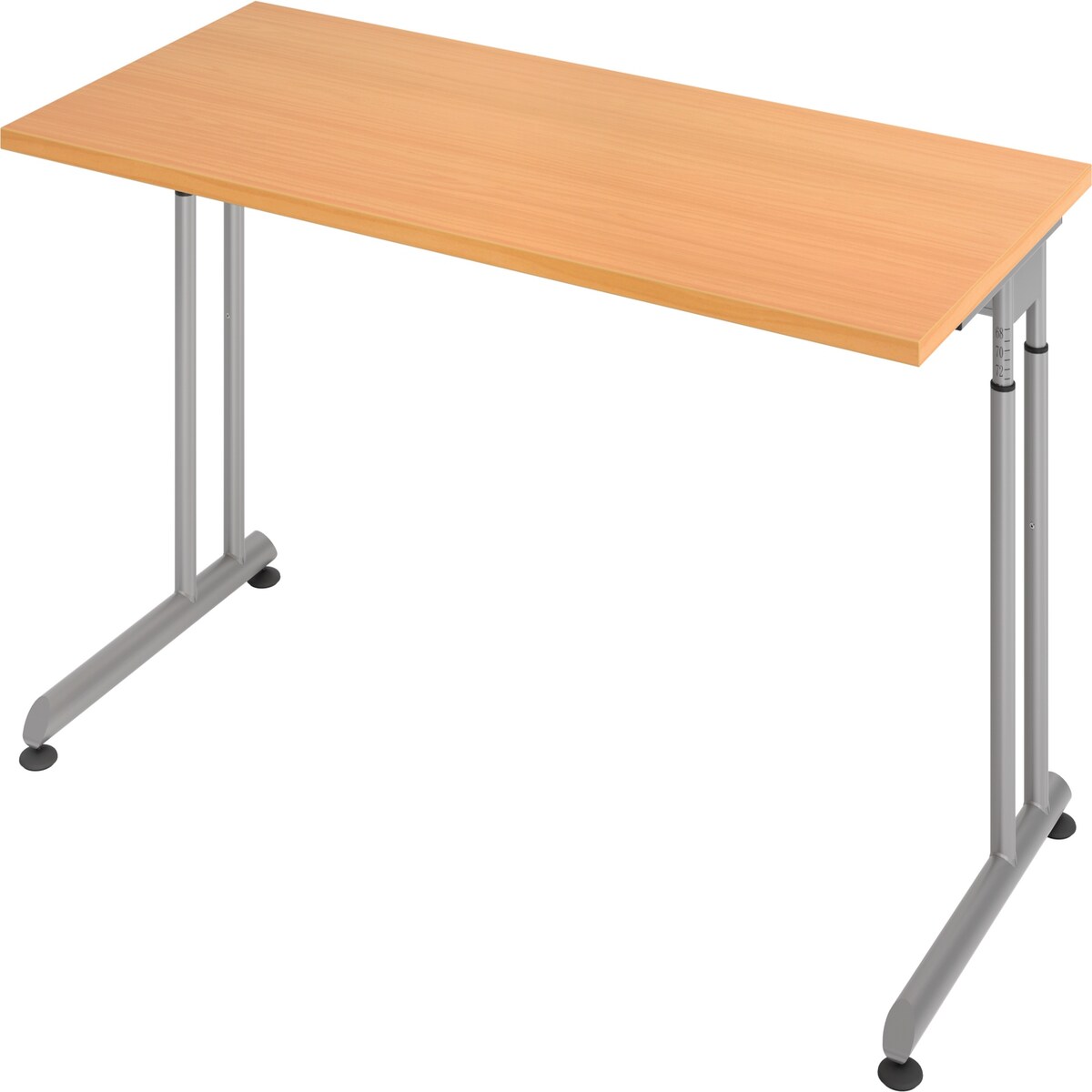 bümö höhenverstellbarer Schreibtisch Z-Serie 180x80 cm in Buche, Gestell in Silber - großer PC Tisch für's Büro manuell höhenverstellbar,