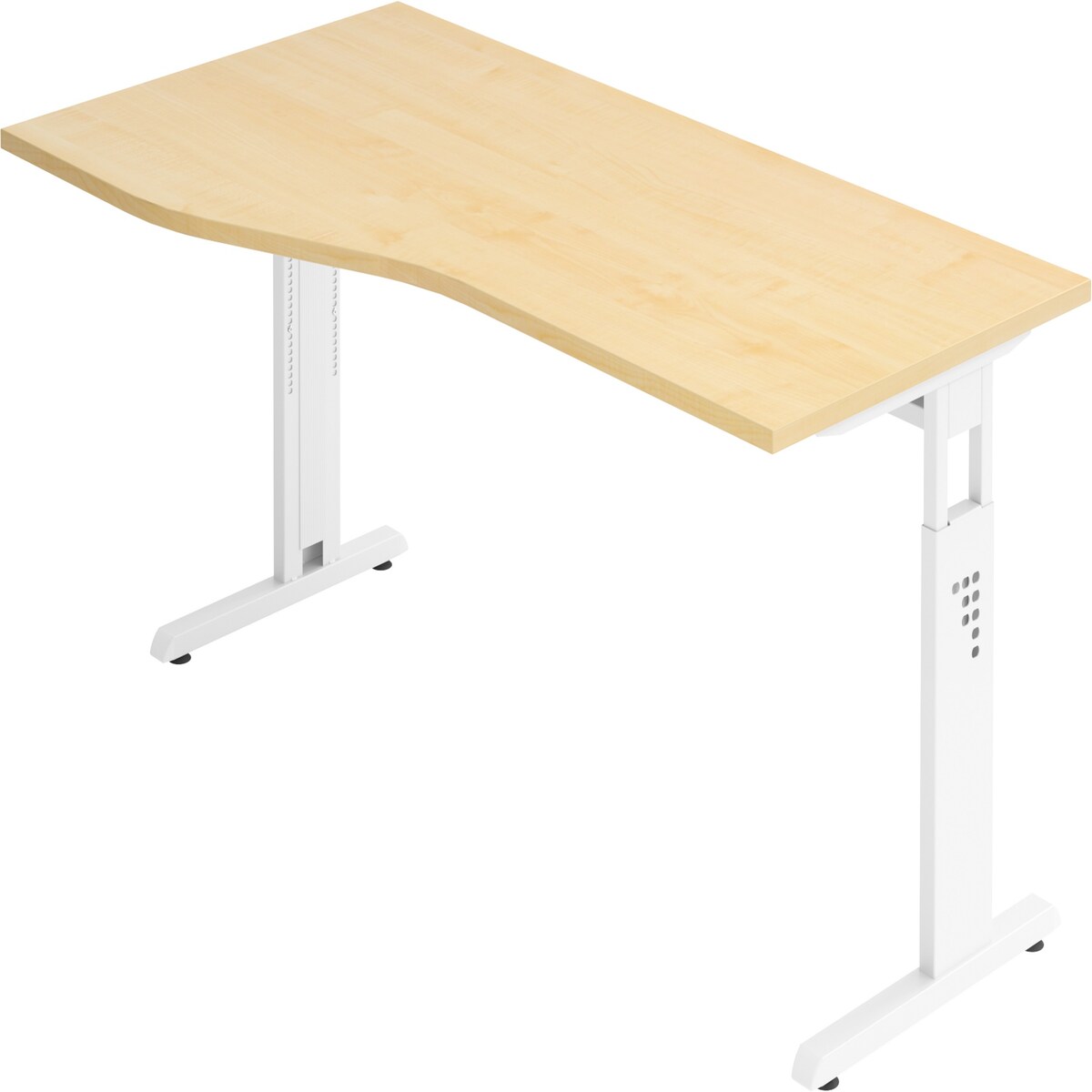 bümö höhenverstellbarer Schreibtisch O-Serie 180x100 cm in Ahorn, Gestell in weiß - großer PC Tisch für's Büro manuell höhenverstellbar,