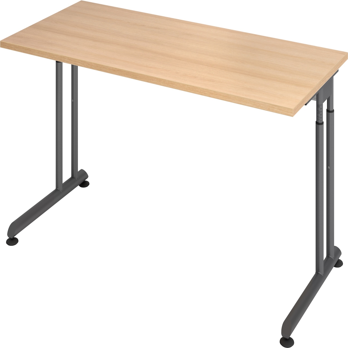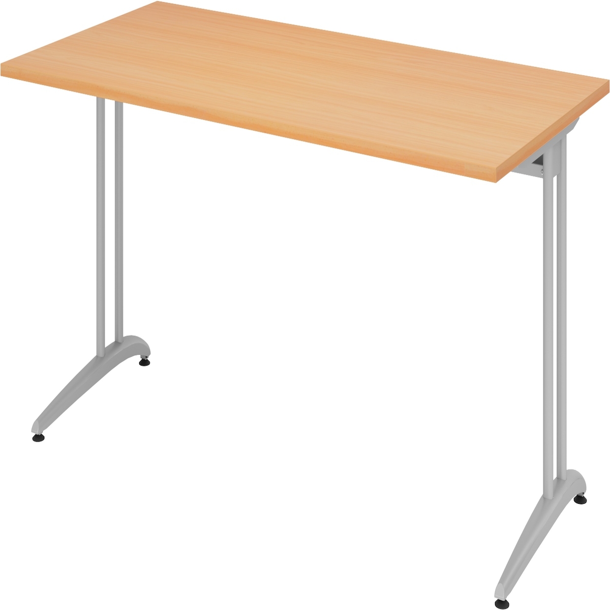 bümö Schreibtisch groß, B-Serie 200x100 cm, Tischplatte aus Holz in Buche, Gestell aus Metall in Silber - PC Tisch, großer Computertisch für's Büro,