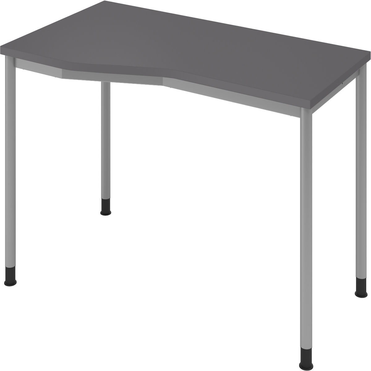 bümö höhenverstellbarer Schreibtisch H-Serie 180x100 cm in graphit, Gestell in Silber - großer PC Tisch für's Büro manuell höhenverstellbar,