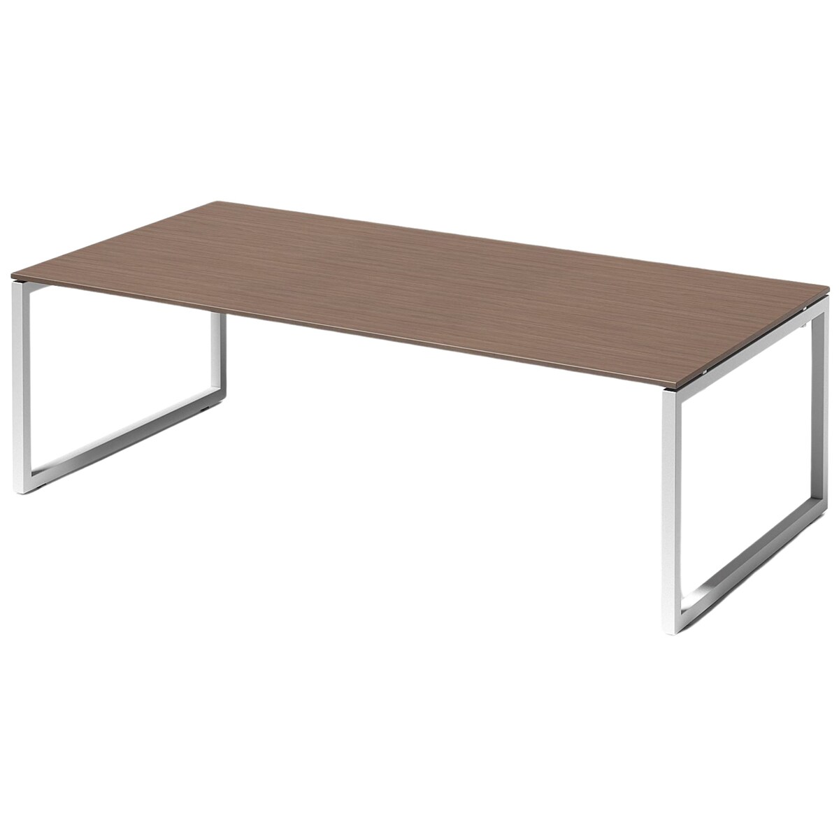 Bisley Cito Konferenztisch 240x120 cm, Tischplatte in Nussbaum, O-Gestell in Weiß - Besprechungstisch & Meetingtisch, großer Chef Schreibtisch