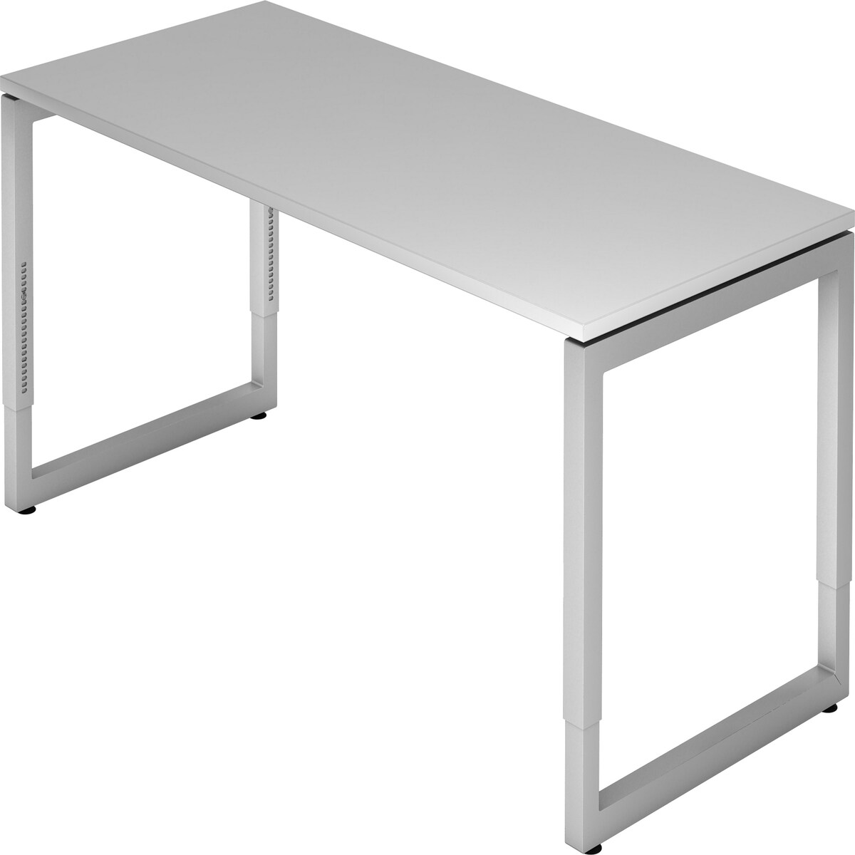 bümö höhenverstellbarer Schreibtisch O-Serie 200x100 cm in weiß, Gestell in Graphit - großer PC Tisch für's Büro manuell höhenverstellbar,