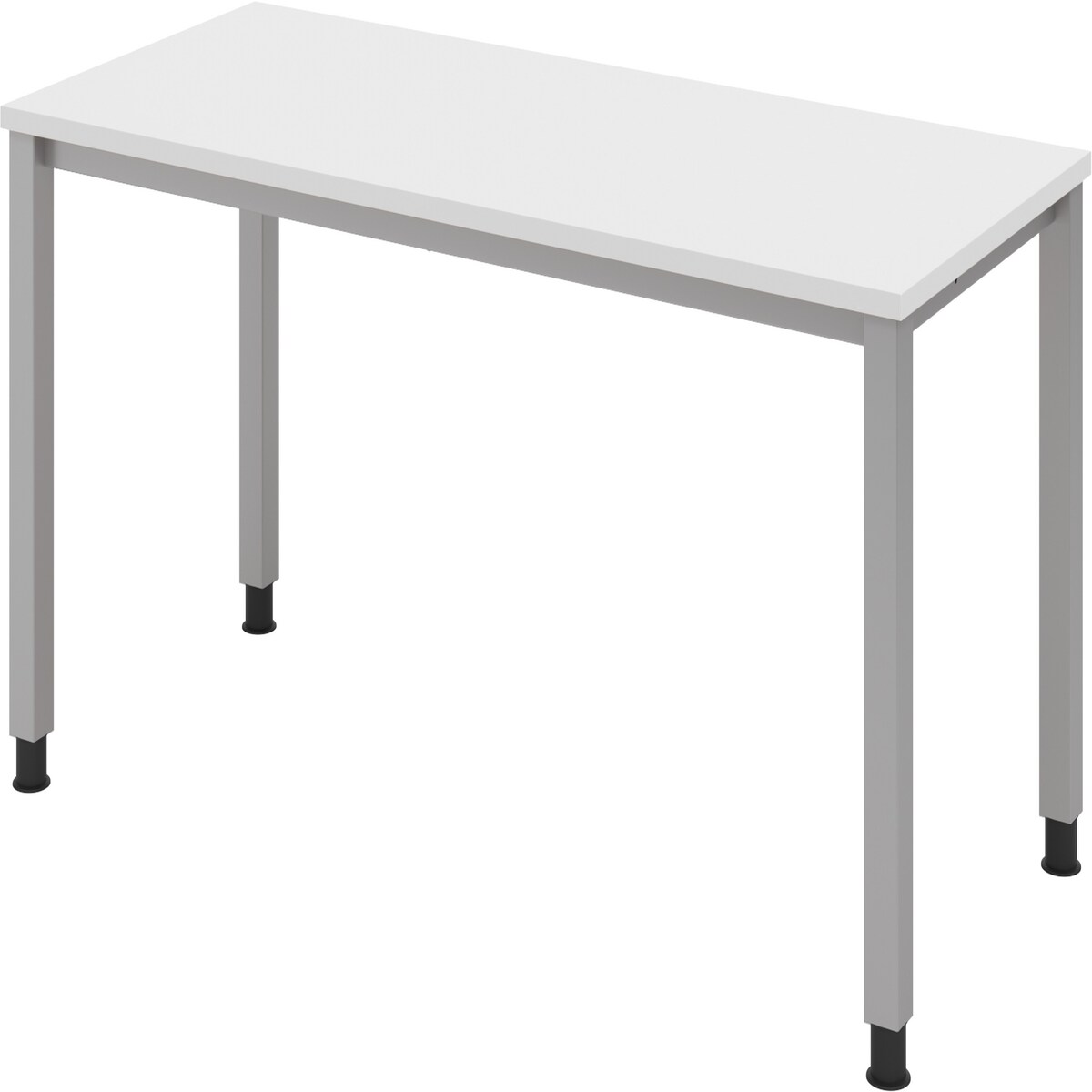 bümö Schreibtisch groß, N-Serie 180x80 cm, Tischplatte aus Holz in weiß, Gestell aus Metall in Silber - PC Tisch, großer Computertisch für's Büro,