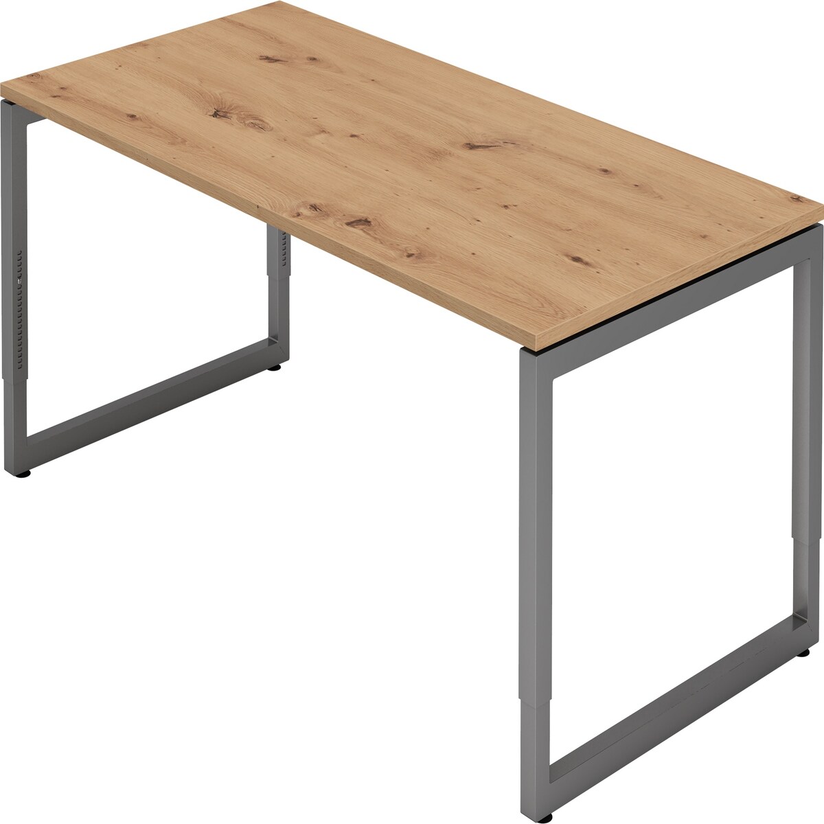 bümö höhenverstellbarer Schreibtisch O-Serie 200x100 cm in Asteiche, Gestell in Silber - großer PC Tisch für's Büro manuell höhenverstellbar,