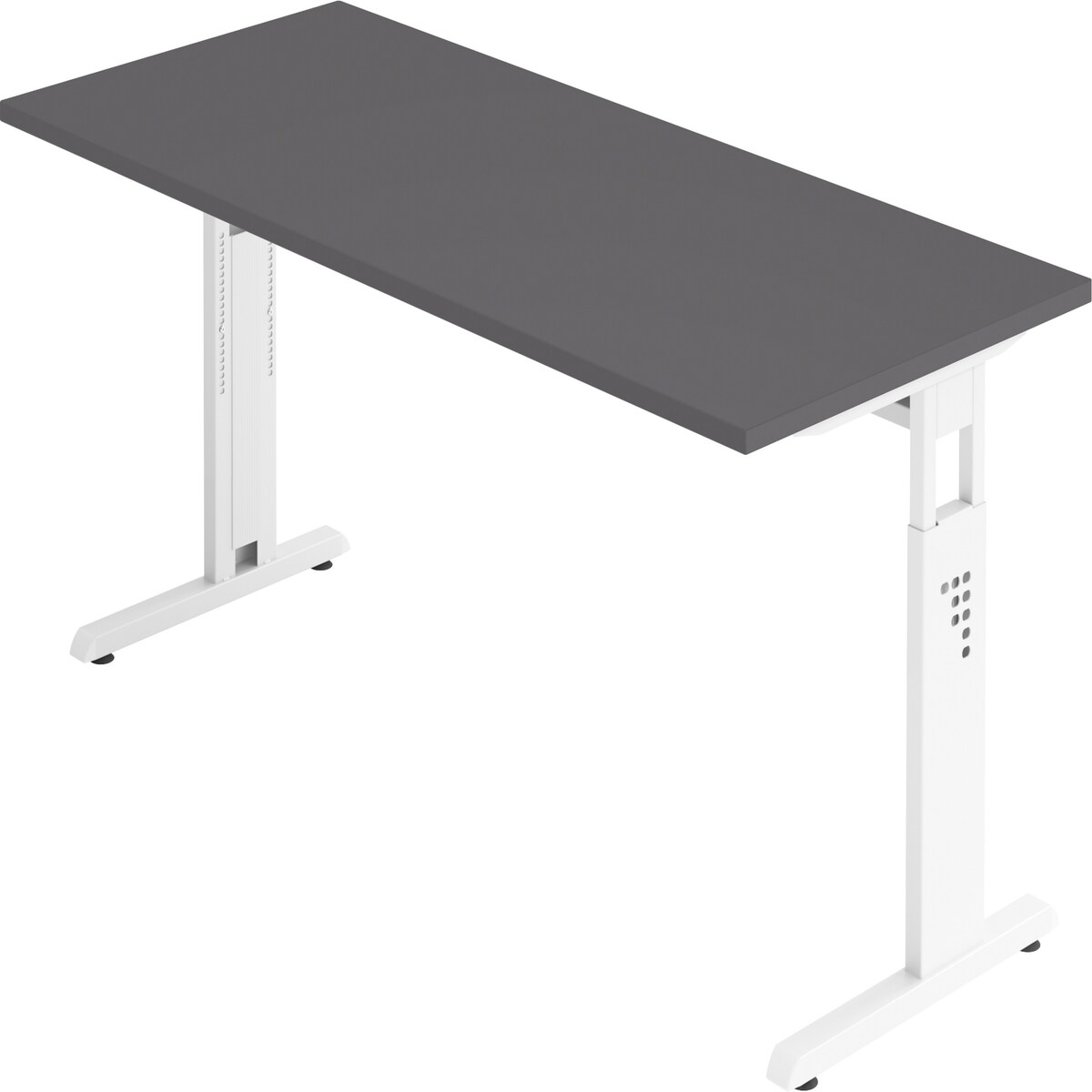 bümö höhenverstellbarer Schreibtisch O-Serie 180x80 cm in Graphit, Gestell in weiß - großer PC Tisch für's Büro manuell höhenverstellbar,