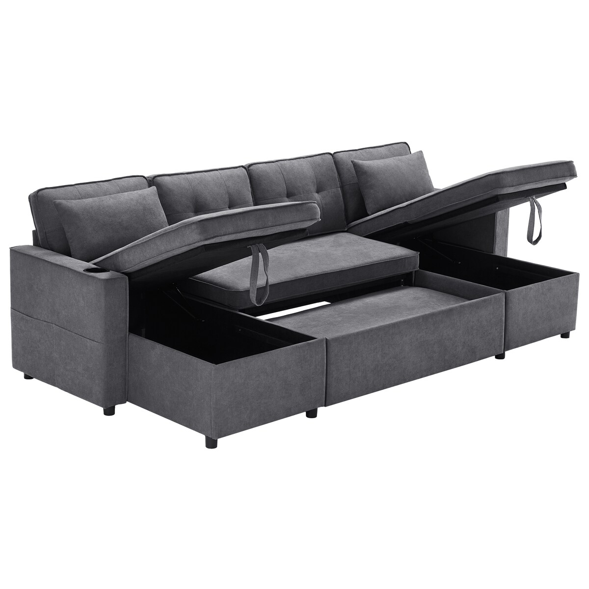 Schlafsofa U-förmig 270×130×86 cm aus Baumwolle & Leinen mit Stauraum Grau – großes Sofa Bett flexibel & komfortabel