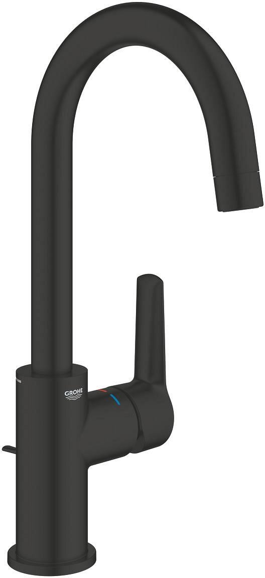 GROHE QuickFix Start Einhebel-Waschtischarmatur, Rohrauslauf, Hochdruck, 1/2′′ L-Size, EcoJoy, mattschwarz (242032432)