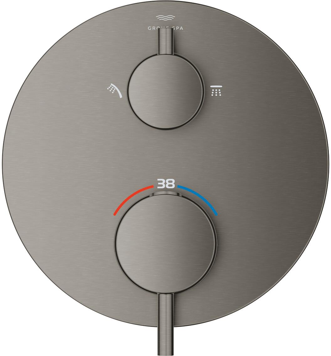 GROHE Atrio Thermostat-Brausebatterie, integrierter 2-Wege-Umstellung, Fertigmontageset, hard graphite gebürstet (24358AL0)