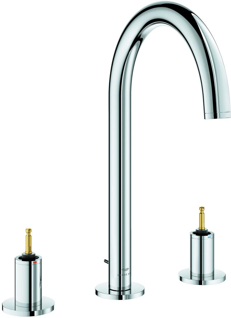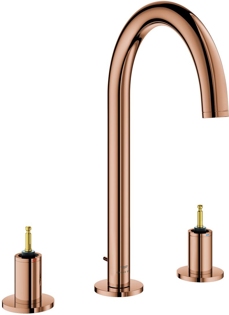 GROHE Atrio 3-Loch-Waschtischbatterie, L-Size, Hebelgriffe, Ablaufgarnitur, cool sunrise (20649GL0)