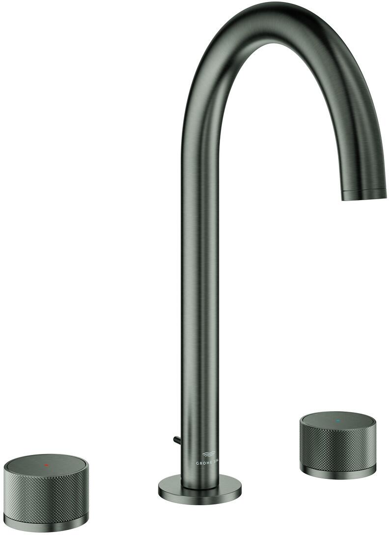 GROHE Atrio Private Collection 3-Loch-Waschtischbatterie, Knopfbetätigung, Ablaufgarnitur, hard graphite gebürstet (20595AL0)