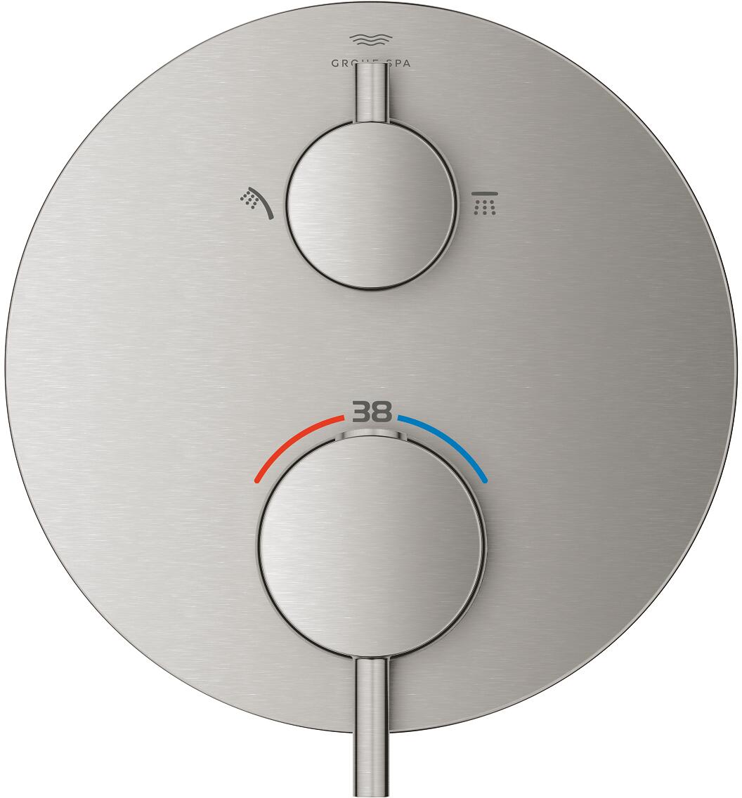 GROHE Atrio Thermostat-Brausebatterie, integrierter 2-Wege-Umstellung, Fertigmontageset, supersteel (24358DC0)