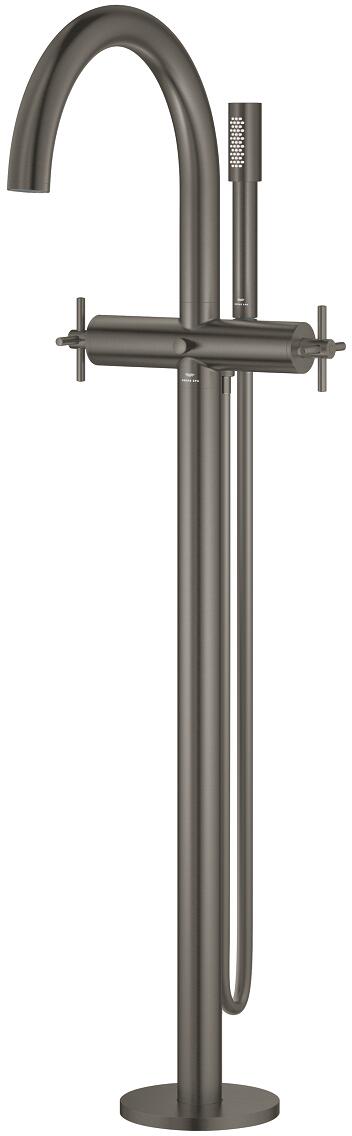 GROHE Atrio Wannenbatterie, Fertigmontageset für 45984, eigensicher, Kreuzgriffe, Handbrauseset, hard graphite gebürstet (25272AL0)