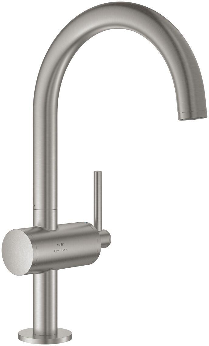 GROHE Atrio Einhand-Waschtischbatterie, L-Size, schwenkbarer Bogenauslauf, Ablaufgarnitur, supersteel (24362DC0)