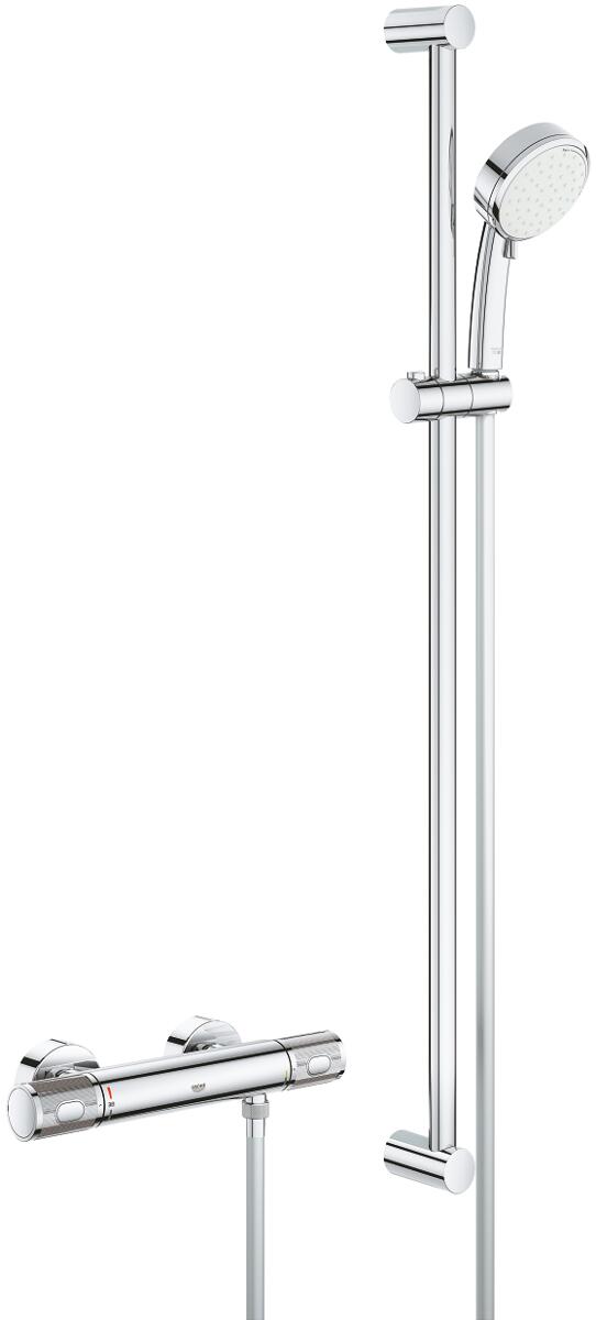 GROHE Grohtherm 1000 Performance Thermostat-Brausebatterie, Wandmontage, mit Brausestangenset 900mm, eigensicher, Professional Edition, chrom (3483500