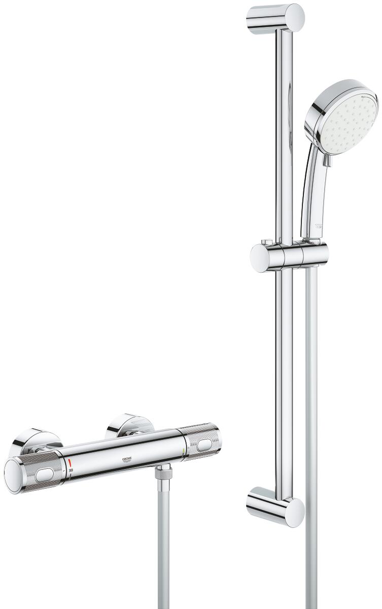 GROHE Grohtherm 1000 Performance Thermostat-Brausebatterie, Wandmontage, mit Brausestangenset 600mm, Professional Edition, chrom (34834000)
