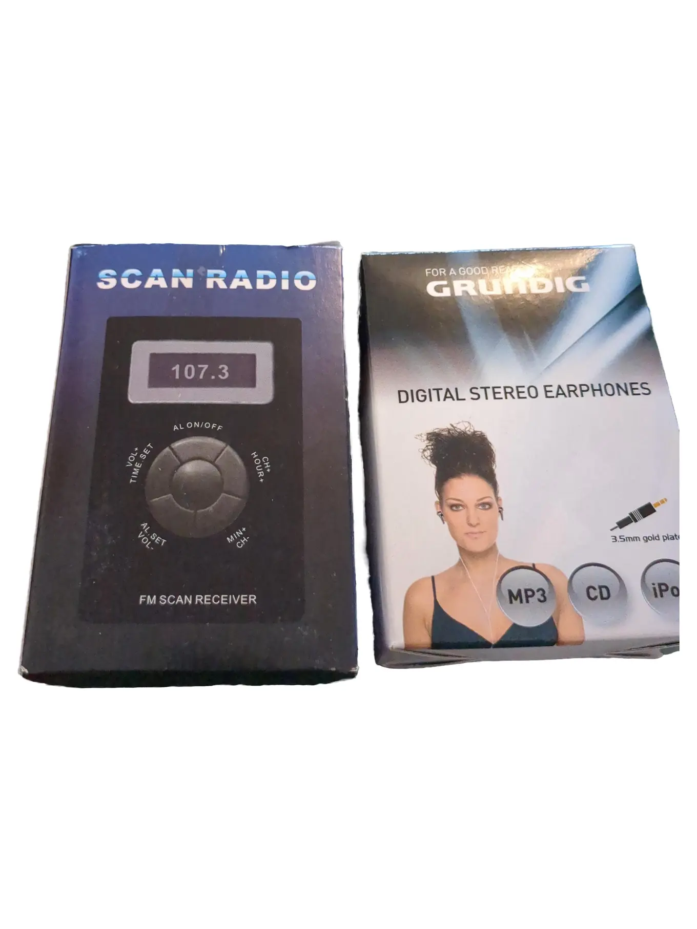 MARKENLOS Scan Radio FM Receiver + Grundig Digital Stereo Kopfhörer Set Schwarz