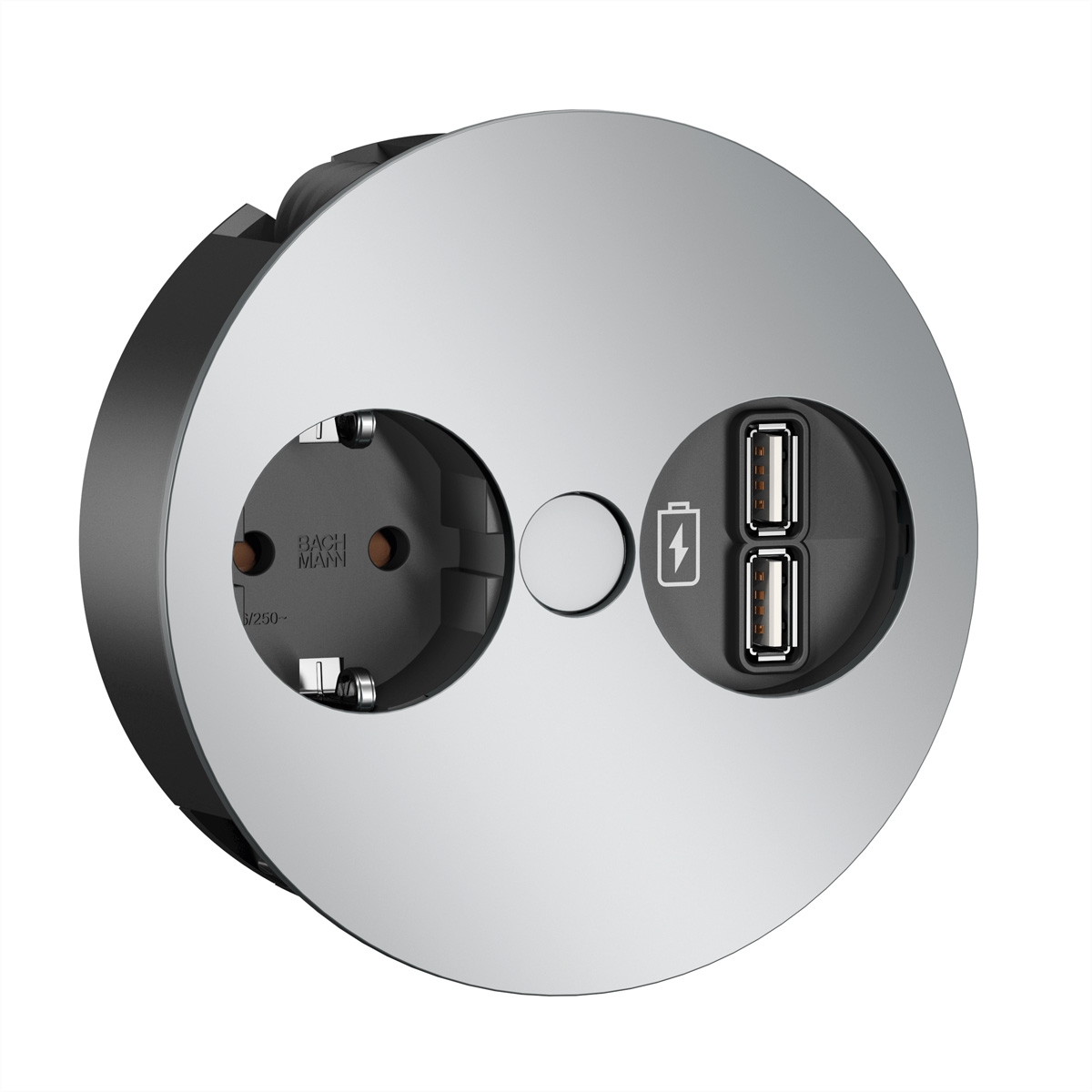 BACHMANN TWIST 1x Schutzkontakt, USB-Charger, GST18-Stecker, chrom, 0,2 m