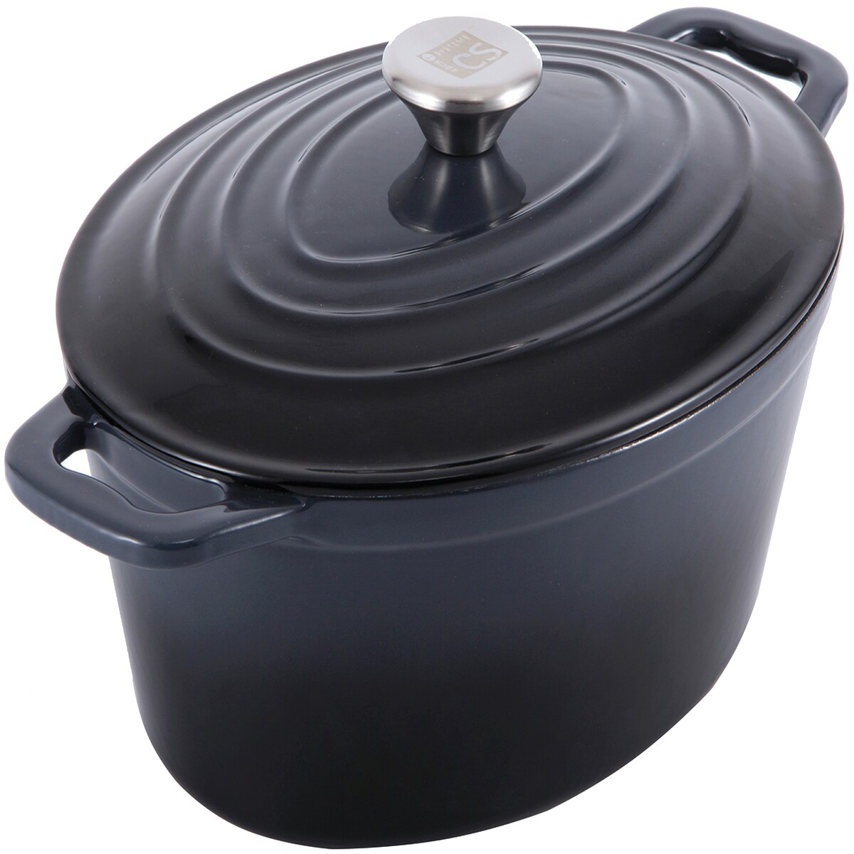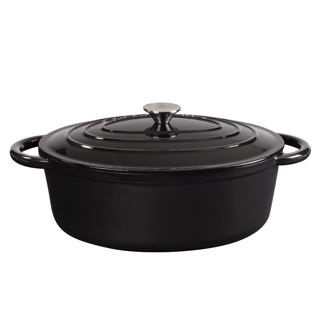 Bräter mit Deckel aus Gusseisen, Emaille-Beschichtung, 9,5 L, Schwarz, Oval