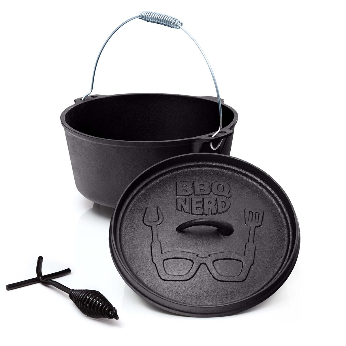 BBQ-Nerd Dutch Oven "Starter" 3,1L mit Füßen | bereits eingebrannt | Gusseisen Feuertopf, Bräter mit Deckel inkl. Deckelheber