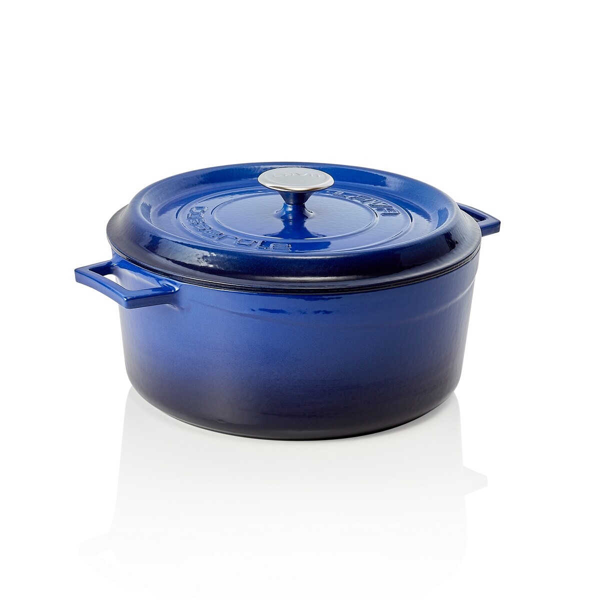 LAVA Kochtopf Bräter mit Deckel aus emailliertem Gusseisen Blau mit 7,0 Liter