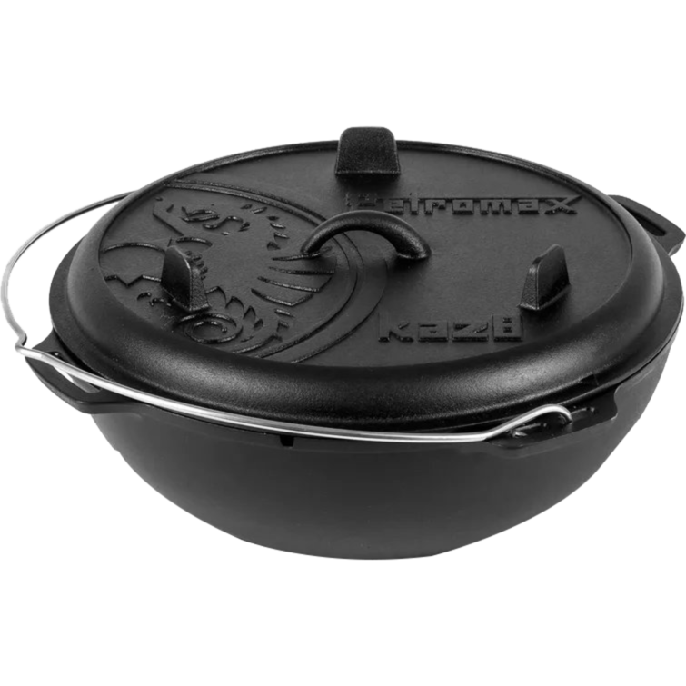 Kazan Topf 16 Liter aus Gusseisen, mit Deckel und flachem Boden, für Utschak geeignet, Outdoorküche Gulasch Kanone
