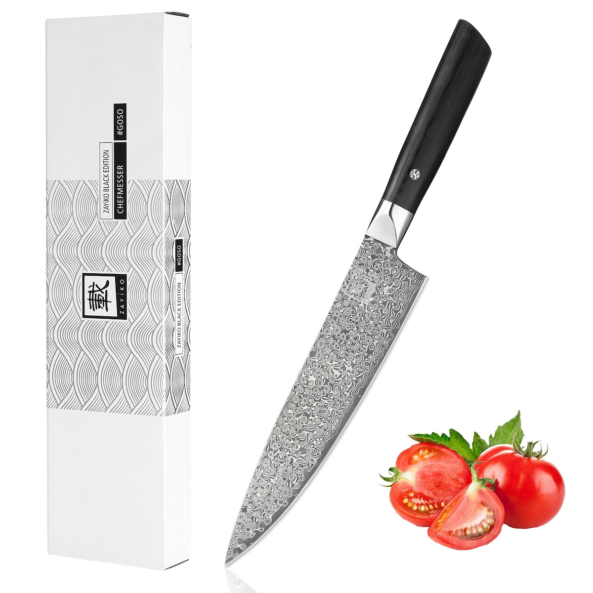 Zayiko Black Edition Chefmesser Gyuto I 20cm Klinge I dunkler Damast I Pakkaholz