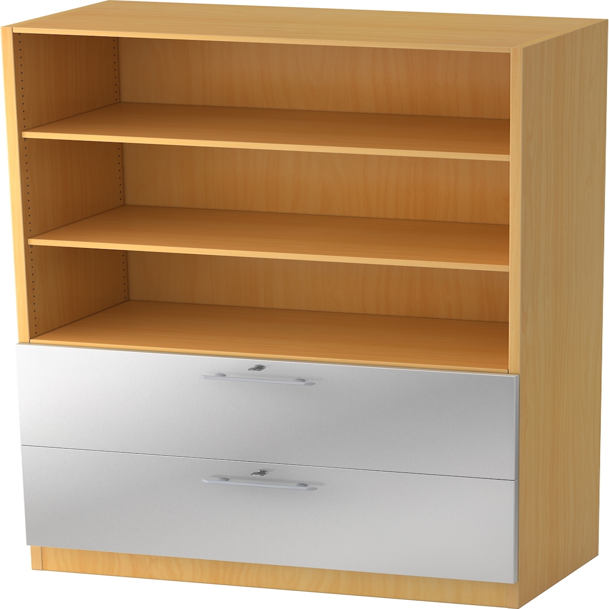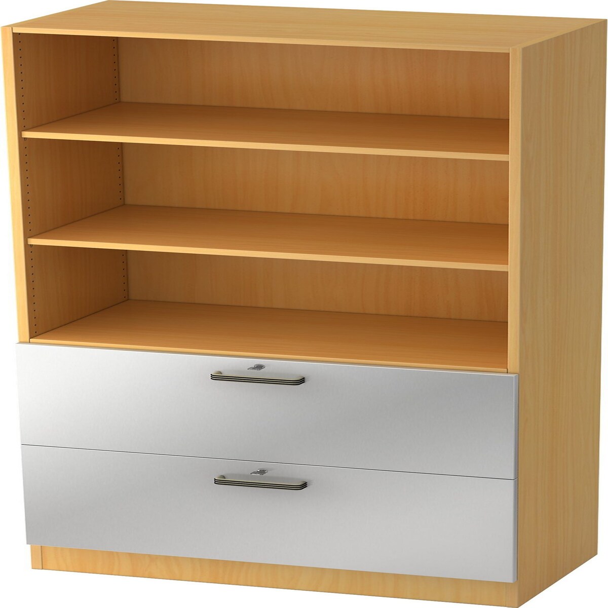 bümö office Aktenschrank mit Hängeregister-Schubladen abschließbar, Büroschrank Holz, 80cm breit in Buche/Silber - Hängeregistratur für Hängeordner,