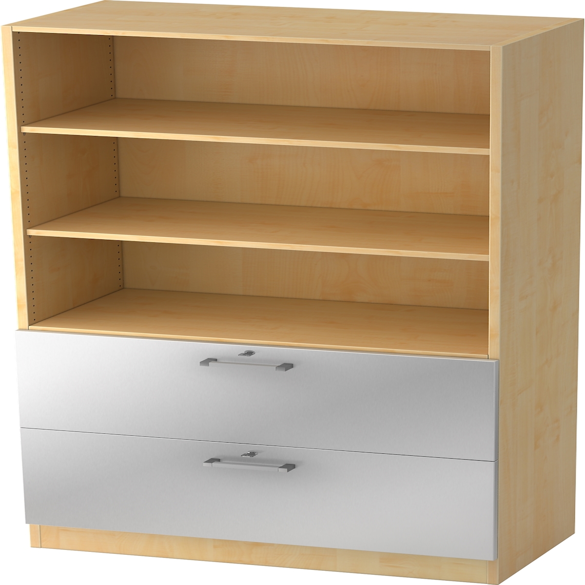 bümö office Aktenschrank mit Hängeregister-Schubladen abschließbar, Büroschrank Holz, 80cm breit in Ahorn/Silber - Hängeregistratur für Hängeordner,