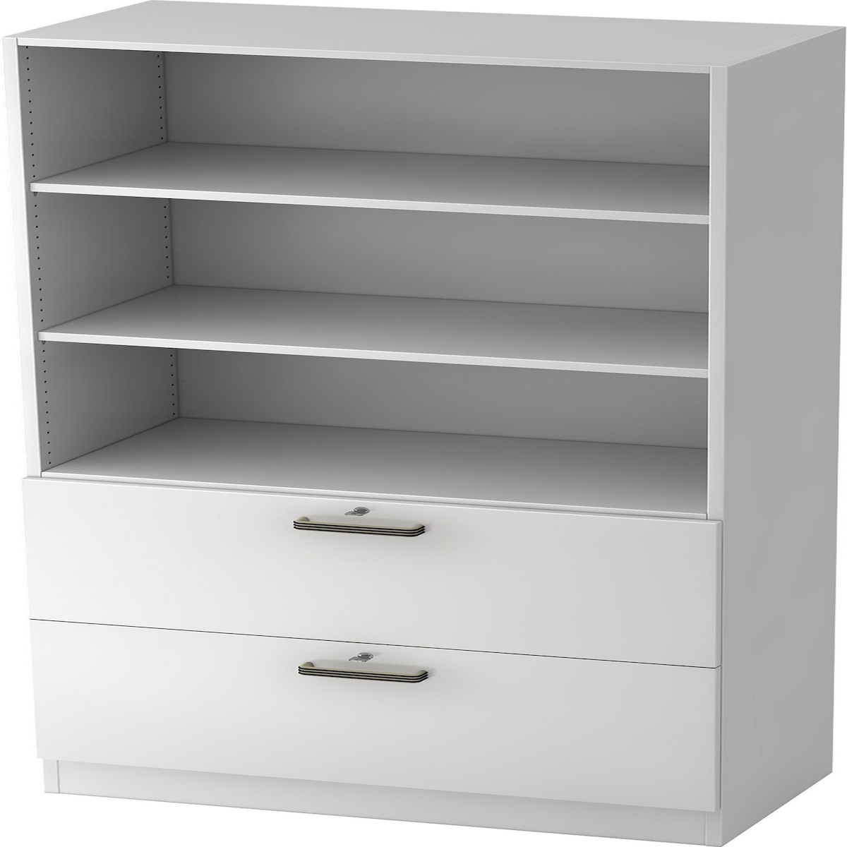 bümö office Aktenschrank mit Hängeregister-Schubladen abschließbar, Büroschrank Holz, 80cm breit in Weiß/Silber - Hängeregistratur für Hängeordner,