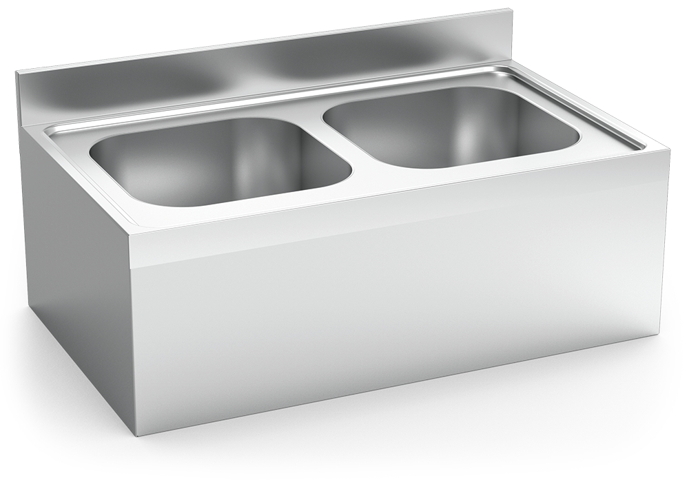 FRICOSMOS-Hängewaschbecken mit Schürze 2C 1000x700x355 mm. Eimerabmessungen 400x500x250 mm.