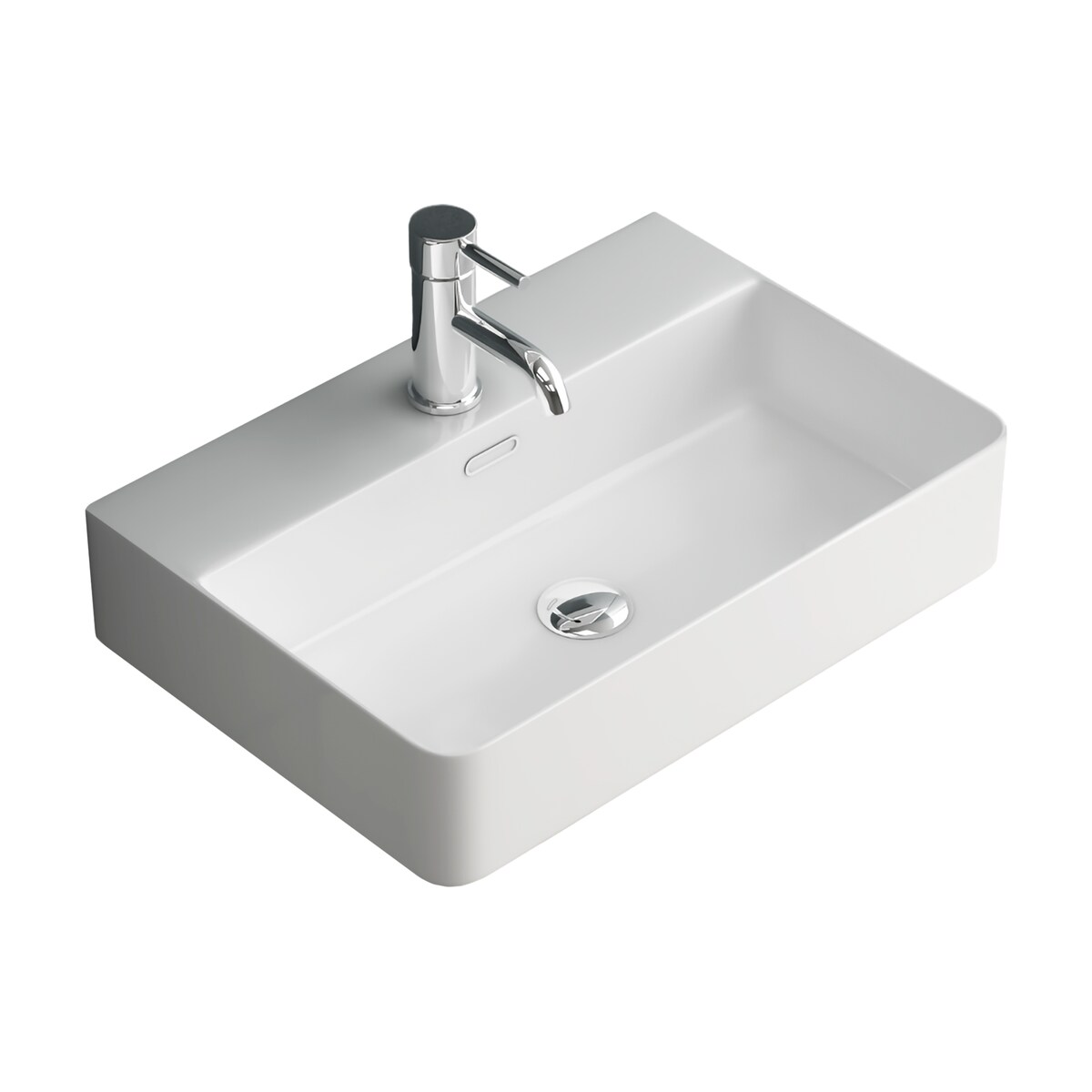 VIGOUR ONE Waschtisch Hängewaschbecken Kristallporzellan mit Hahnloch 65 x 47 cm, weiß