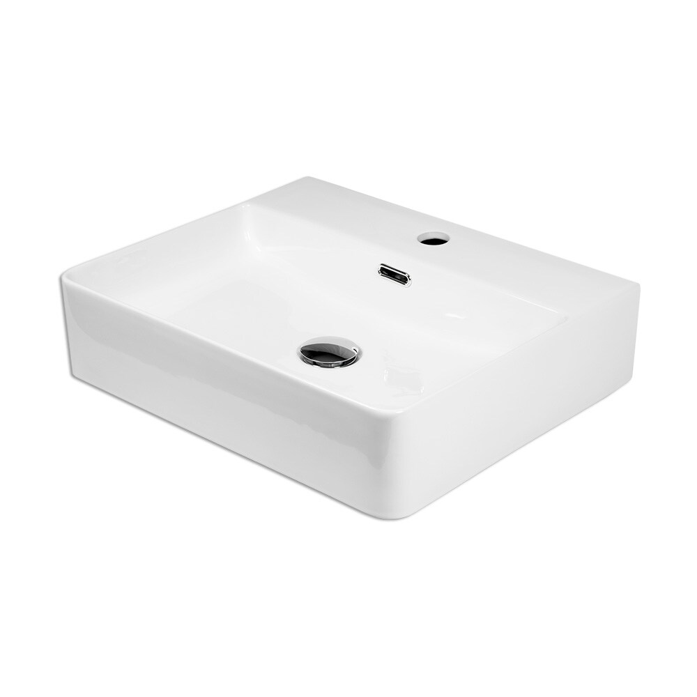 Belvit Waschbecken Slim Waschtisch Überlauf Spülbecken Keramik Hängewaschbecken 55cm