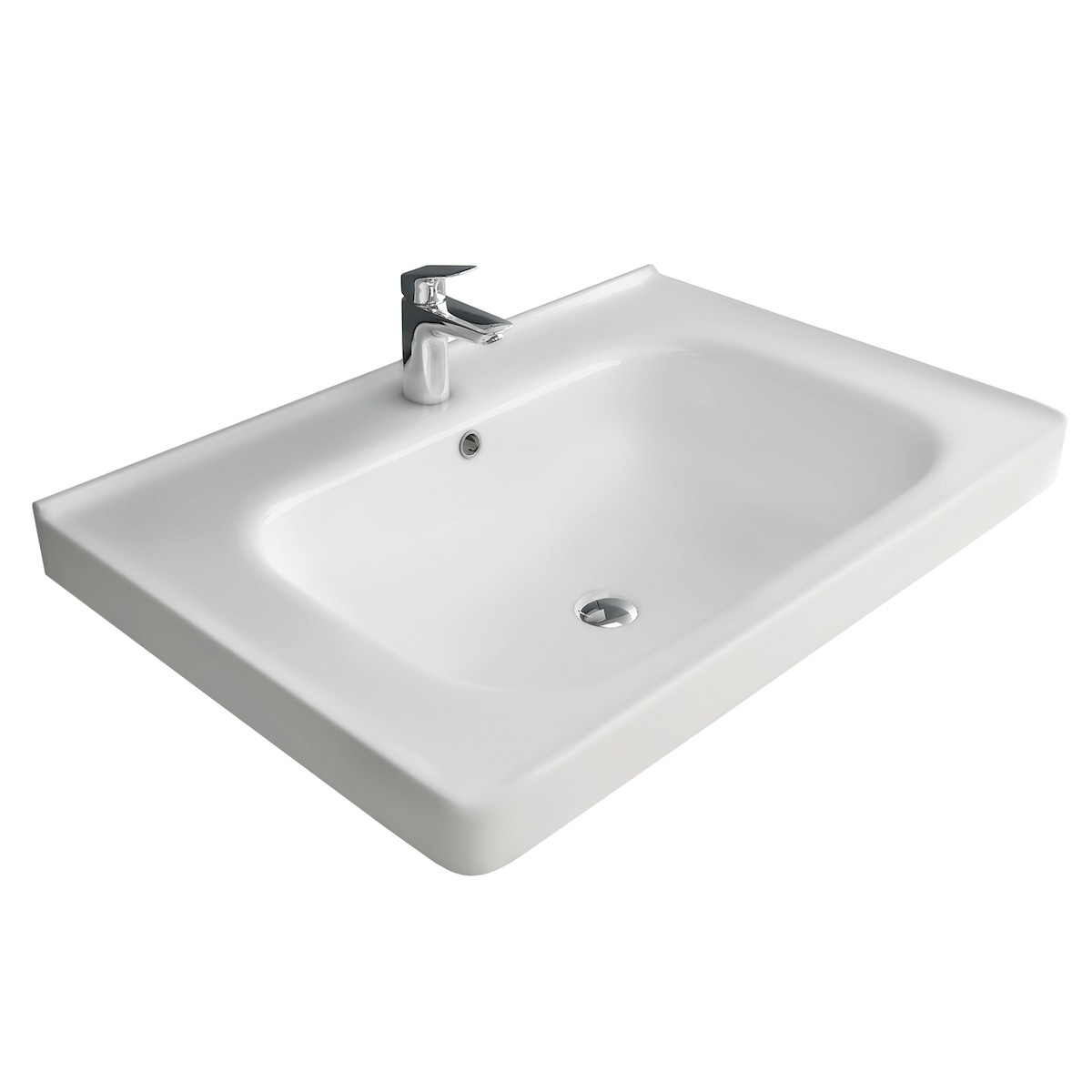 Waschbecken Hängewaschbecken Aufsatzwaschbecken Mineralguss Weiß 1 Armaturenloch Rechteckig 80 cm