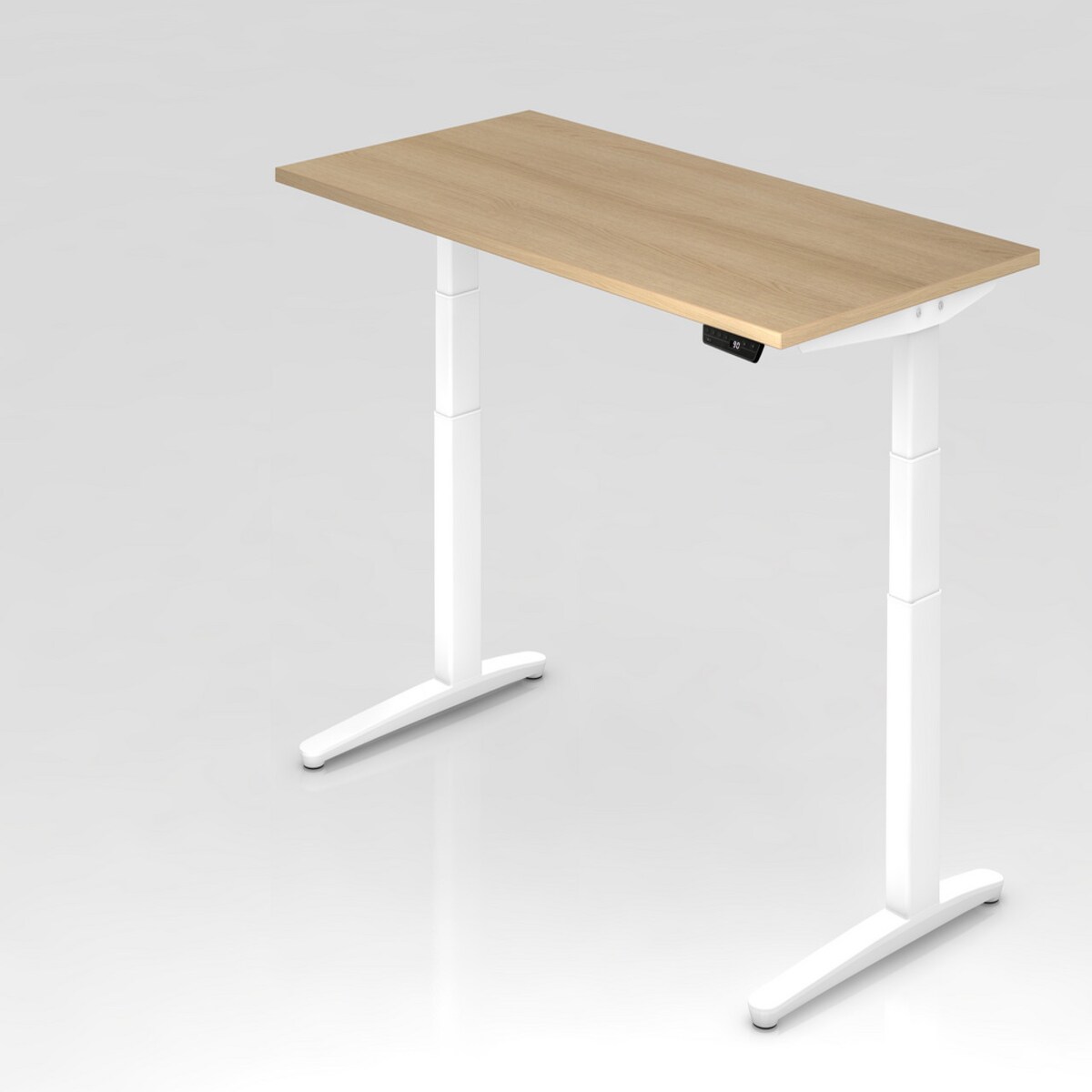 PROREGAL Sitz-Steh-Schreibtisch Pekka | Eiche | Weißes GestellBxT 160x80cm | Höhe 65-130cm | elektrisch stufenlos höhenverstellbar | C-Fuß Gestell