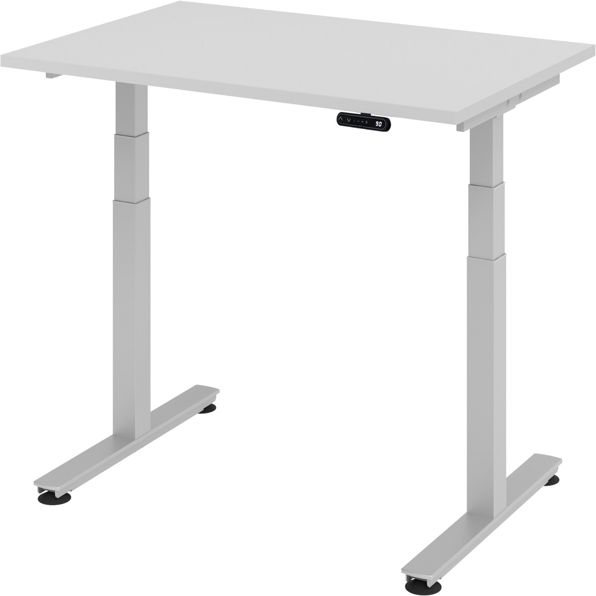 bümö elektrisch höhenverstellbarer Schreibtisch 120x80 cm in grau, Gestell silber - Schreibtisch höhenverstellbar elektrisch mit Memory-Steuerung,