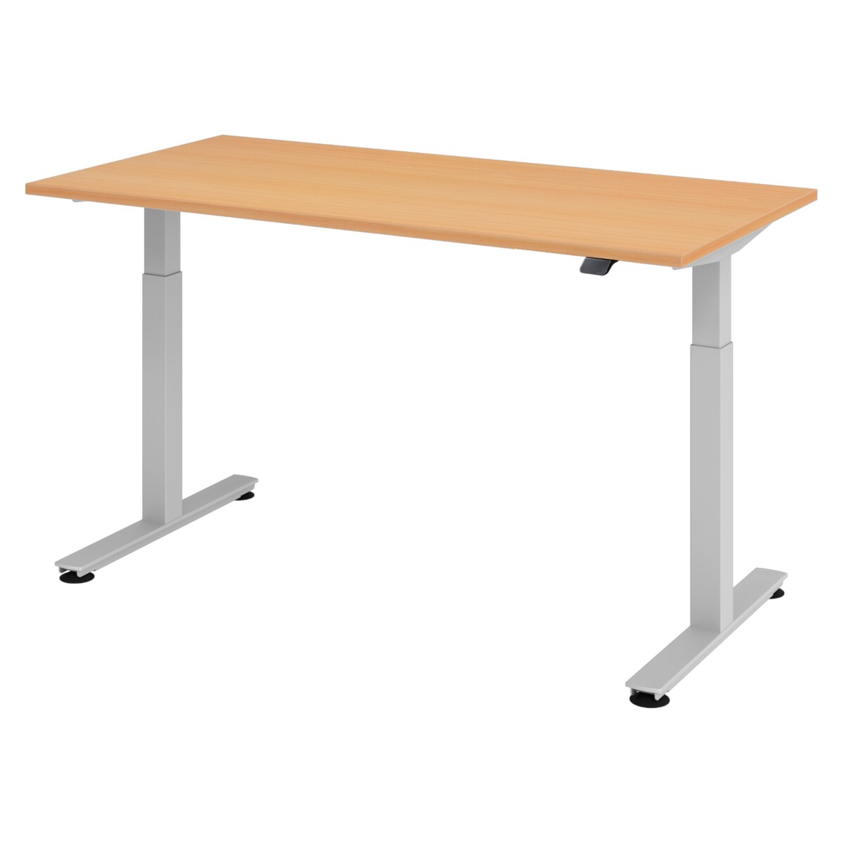 bümö elektrisch höhenverstellbarer Schreibtisch Buche 160x80 cm, Gestell: Silber - Büroschreibtisch höhenverstellbar elektrisch, elektrischer