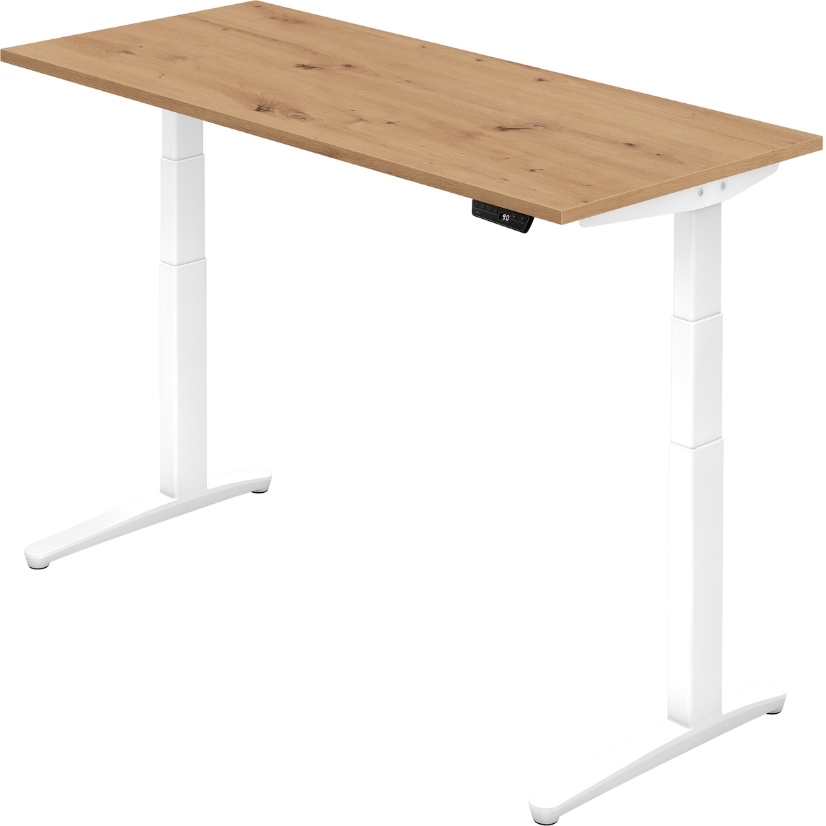 Bisley E-WonderTech elektrisch höhenverstellbarer Schreibtisch 180x80 cm in Weiß/Eiche - Elektrischer Tisch höhenverstellbar mit Memory-Funktion