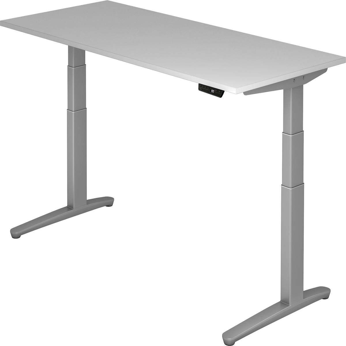 bümö elektrisch höhenverstellbarer Schreibtisch weiß 180x80 cm, Gestell: Silber - Büroschreibtisch höhenverstellbar elektrisch, elektrischer