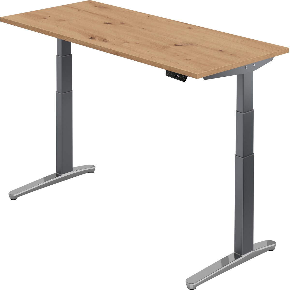 bümö elektrisch höhenverstellbarer Schreibtisch Asteiche 200x100 cm, Gestell: Graphit - Büroschreibtisch höhenverstellbar elektrisch, elektrischer